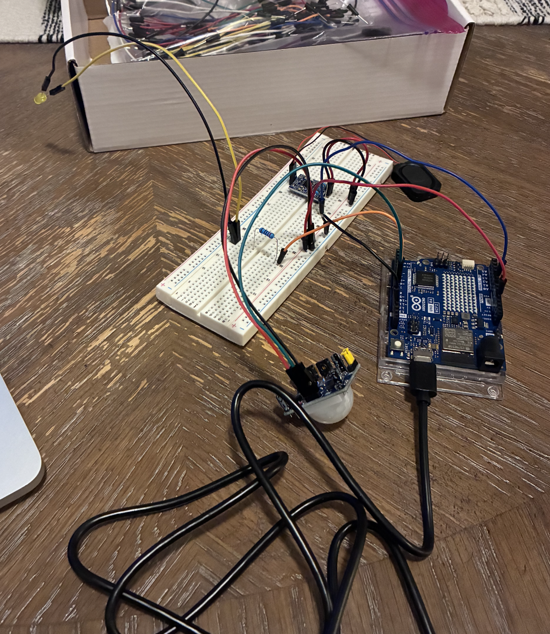 Activity 2 focused on validating the technical feasibility of integrating motion sensing, light, and sound into a single, reliable system within a constrained physical enclosure. Each component—the PIR sensor, LEDs, and speaker—was tested independently before being combined, with particular attention paid to calibration and system coordination.